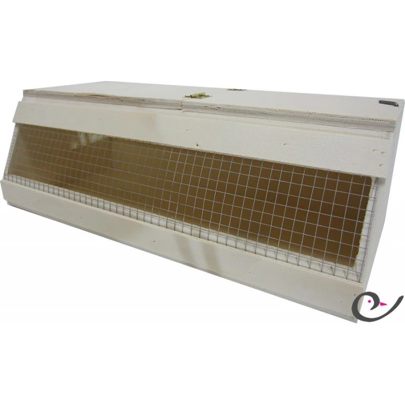 Boite de transport en bois permettant d’isoler quelques oiseaux. Porte avec charnières et loquet de fermeture.