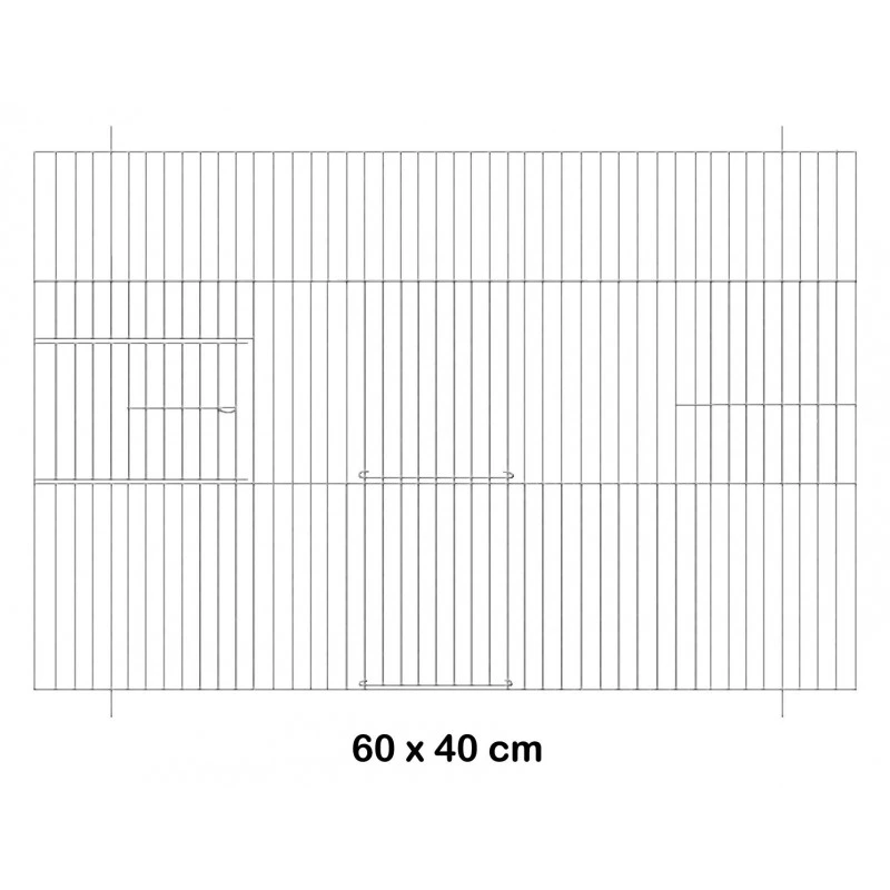- Façade de cage chromée pour la construction de batteries pour becs droits et perruches comprenant 1 porte à guillotine, 1 portes latérale pour le nid extérieur ou la baignoire.