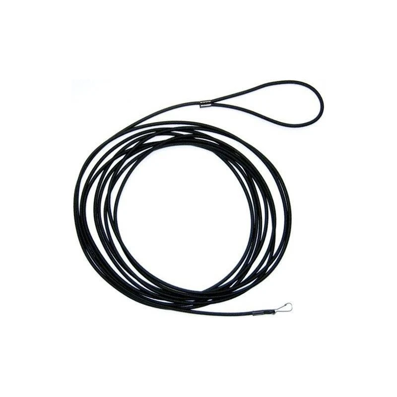 Laisse pour harnais aviator pour oiseaux de taille moyenne à grande (amazone, rosalbin, gris du gabon, aras…) il s’agit d’une rallonge élastique pour les harnais aviator, exite en plusieurs longueurs : 6 mètres. Disponible uniquement en noir. Une boucle permet de glisser le harnais autour du poignet.