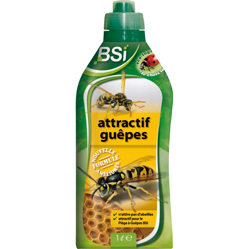 - Contrairement aux autres attractifs généralement sucrés, l’Attractif Guêpes BSI n’attire pas d’abeilles!